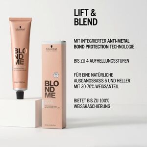 BLONDME Lift & Blend – mit integrierter Anti-Metal Bond Protection Technologie – ist ideal für Kund:innen mit reifem blondem Haar, die einen anspruchsvollen Blondlook suchen. Es bietet ultimative Weisskaschierung, Aufhellung und Nuancierung in einem Schritt. In Kombination mit BLONDME Premium Developer können bis zu 4 Stufen Aufhellung und optimale Weisskaschierung auf einer natürlichen Ausgangsbasis 6 und heller, mit 30%-70% Weissanteil, erreicht werden. Die integrierte Anti-Metal Bond Protection Technologie schützt die Faserverbindungen während des Aufhellungsprozesses, hilft dabei, neue Verbindungen zu schaffen und sorgt für minimierten Haarbruch. Keine Bondingzusätze oder Anti-Metall Produkte erforderlich. Nuance: ICE – mit Anti-Gelb-Effekt für eine sanfte Neutralisation von leichten GoldtönenICE-IRISÉ – Anti-Gelb-Effekt für einen kühlen Farbton mit leicht irisierender NuancierungSAND – Echte, natürliche BlondtöneBISCUIT – Reichhaltiges Beige mit einem leicht warmen TouchASCH – Starke Neutralisationskraft, ideal zur Neutralisation orange-gelber UntertöneBROWN MAHAGONY – Reichhaltige, kühle Rosenholzreflexe Anwendung: Auf das trockene, nicht gewaschene Haar auftragen. Empfohlene Ausgangsbasis: Dunkelblond 6-0 und heller, mit 30-70% Weissanteil. BLONDME Bond Enforcing Lift & Blend mit einem BLONDME Premium Developer im Verhältnis 1:1 mischen. Empfohlene Entwicklerstärke: 12% - 40 Vol. für Ausgangsbasis 6-0 und 7-0, 9% - 30 Vol. für Ausgangsbasis 8-0 und heller. BLONDME Lift & Blend und BLONDME Premium Developer immer sorgfältig mischen, bis eine geschmeidige Konsistenz entsteht. Die Farbcreme unmittelbar nach dem Mischen auftragen. Das Produkt grosszügig auftragen, um eine bestmögliche Weisskaschierung und Aufhellungsergebnisse zu erzielen. Einwirkzeit: 30-45 MinutenZusätzliche Wärme wird NICHT empfohlen Warnhinweis: Nur für gewerbliche Verwendung. Haarfärbemittel können schwere allergische Reaktionen hervorrufen. Bitte folgende Hinweise lesen und beachten. Dieses Produkt ist nicht für Personen unter 16 Jahren bestimmt. Temporäre Tätowierungen mit „schwarzem Henna“ können das Allergierisiko erhöhen. Das Haar nicht färben, wenn Sie einen Ausschlag im Gesicht haben oder wenn Ihre Kopfhaut empfindlich, gereizt oder verletzt ist; wenn Sie schon einmal nach dem Färben Ihrer Haare eine Reaktion festgestellt haben; wenn eine temporäre Tätowierung mit „schwarzem Henna“ bei Ihnen schon einmal eine Reaktion verursacht hat. Darf nicht in die Hände von Kindern gelangen. Kontakt mit den Augen vermeiden. Sofort Augen spülen, falls das Erzeugnis mit den Augen in Berührung gekommen ist. Nicht zum Färben von Wimpern oder Augenbrauen verwenden. Es besteht Erblindungsgefahr. Nicht als Duschgel verwenden. Nach Anwendung die Haare gut spülen. Geeignete Schutzhandschuhe tragen. ACHTUNG: Dieses Produkt enthält Inhaltsstoffe, die bei bestimmten Personen zu Hautreizungen führen können, vor dem Einsatz ist Allergieverdachtstests gemäß der beiliegenden Anleitung...
