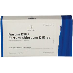 Was ist Aurum D10 / Ferrum sidereum D10 aa und wofür wird es angewendet? Aurum D10 / Ferrum sidereum D10 aa ist ein anthroposophisches Arzneimittel. Gemäß der anthroposopischen Menschen- und Naturerkenntnis gehört zu den Anwendungsgebieten die Anregung der Ich-geführten Willenstätigkeit durch Harmonisierung des Rhythmischen Systems bei psycho-physischen Versagenszuständen, z.B. Lampenfieber, Platzangst, Erschöpfung, depressive Verstimmung. Wie ist Aurum D10 / Ferrum sidereum D10 aa anzuwenden? Wenden Sie Aurum D10 / Ferrum sidereum D10 aa immer genau nach der Anweisung Ihres Arztes an. Falls vom Arzt nicht anders verordnet, ist die übliche Dosis: Erwachsene erhalten 2 mal wöchentlich bis 1 mal täglich 1 ml subcutan injiziert. Bitte beachten Sie die Anwendungshinweise. Die Dosierung für Kinder ab 6 Jahren wird vom behandelnden Arzt festgelegt. Die subcutane Injektion erfolgt in der Regel in den Oberschenkel oder die Oberarmaußenseite bzw. in die Bauchregion. Nach Säuberung der Einstichstelle (z.B. durch Abreiben mit 70%igem Alkohol) eine Hautfalte bilden und die Injektionsnadel schräg einstechen. Den Spritzenstempel leicht zurückziehen. Sollte Blut erscheinen, wurde ein Blutgefäß getroffen. Die Injektion in diesem Fall an einer anderen Stelle wiederholen. Wenn kein Blut erscheint, langsam injizieren, anschließend die Nadel herausziehen und auf die Einstichstelle kurz mit einem Tupfer drücken. Es wird in jedem Fall empfohlen, die Injektionstechnik durch eine darin erfahrene Person zu erlernen. Die Behandlung einer akuten Erkrankung sollte nach 2 Wochen abgeschlossen sein. Tritt innerhalb von 2 – 5 Tagen keine Besserung ein, ist ein Arzt aufzusuchen. Die Dauer der Behandlung von chronischen Krankheiten erfordert eine Absprache mit dem Arzt. Zusammensetzung: 1 Ampulle enthält: Wirkstoffe: Aurum metallicum praeparatum Dil. D10 aquos. 0,5 g / Ferrum sidereum Dil. D10 aquos. 0,5 g - letzte Stufe gemeinsam potenziert. Sonstiger Bestandteil: Natriumchlorid.
