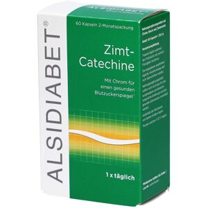 Bitte achten Sie auf eine abwechslungsreiche und ausgewogene Ernährung und gesunde Lebensweise.ALSIDIABET® Zimt-Catechine für Diabetiker Typ IIBei Personen mit einem gestörten Zuckerstoffwechsel ist die Fähigkeit, Zucker aus dem Blut in die Zellen aufzunehmen, in der Regel eingeschränkt. Damit verbleibt mehr Zucker aus der täglichen Nahrung im Blut und erhöht so den Blutzuckerspiegel. Für Diabetiker Typ II ist es deshalb besonders wichtig, bei ihrer Ernährung auf den Blutzuckerspiegel zu achten. Eine klinische Studie mit ALSIDIABET® Zimt-Catechinen konnte zeigen, dass eine Ernährung mit besonderen Pflanzenstoffen aus der Rinde des Zimtbaumes (Catechine) in Kombination mit den Mikronährstoffen Niacin und Chrom ernährungsphysiologisch den Langzeitzuckerwert verbessert. Bei Personen mit einem erhöhten Blutzuckerspiegel liegt ein medizinisch bedingter Nährstoffbedarf vor, der über die normale Ernährung dauerhaft nicht gedeckt werden kann. ALSIDIABET® Zimt-Catechine enthält Catechine in standardisierter Form, Niacin und Chrom und eignet sich aufgrund seiner Eigenschaften und Merkmale zum Diätmanagement bei Diabetes Typ II mit einem erhöhten Blutzuckerspiegel.Produktmerkmale: Zum Diätmanagement bei Diabetes Typ II mit einem erhöhten Blutzuckerspiegel 1x täglich veganZutaten: Zimtextrakt (enthält Maltodextrin) 71 %, Kapselhülle Hydroxypropylmethylcelulose, Niacin, Chrom-III-chlorid, Trennmittel Magnesiumsalze der Speisefettsäuren.Nährwerte: Durschnittliche Nährwerte: pro Kapsel pro 100 g Brennwert 5 kJ / 1 kcal 936 kJ / 220 kcal Eiweiß < 0,5 g 1,4 g Kohlenhydrate < 0,5 g 52 g Fett < 0,5 g 1,0 g Niacin 18 mg NE - Chrom 60 µg - Zimtextrakt 350 mg - Verzehrsempfehlung: 1 Kapsel täglich während des Frühstücks mit reichlich Flüssigkeit verzehren.Hinweis:Die angegebene empfohlene Tagesmenge darf nicht überschritten werden. Bilanzierte Diät. Nur unter ärztlicher Aufsicht verwenden und bei Bedarf mit Ihrem Diätassistenten oder Ernährungsberater abstimmen.Nicht als einzige Nahrungsquelle geeignet.Aufbewahrung:Kühl (6-25 °C) und lichtgeschützt lagern. Außerhalb der Reichweite von Kindern aufbewahren.Nettofüllmenge: 60 Kapseln = 29,4 Herstellerdaten: ALSITAN GmbHGewerbering 6D-86926 Greifenberg
