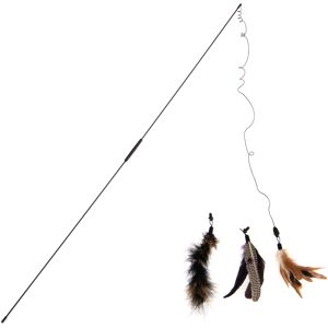 Mit der Katzenangel 3 in 1 wird es Ihnen schnell gelingen, den Tiger in Ihrem Kätzchen hervorzulocken: Die drei Anhänger animieren mit Federn, Bast- und Stoff-Bändchen in naturbelassenen und bunten Farben zum Toben, Tollen und Jagen. Das sorgt für Abwechslung und bietet Ihrem Liebling immer wieder neue Herausforderungen. So fördern Sie auf spielerische Art Instinkte, Konzentration und Geschicklichkeit Ihrer Samtpfote. Der 45 cm lange Stab liegt gut in der Hand und dank des elastischen Gummibandes können Sie die beweglichen Anhänger ganz leicht zum spielerischen Tanz bewegen und die Flugeigenschaft der „Beute“ imitieren. Ein riesen Spaß für jede Fellnase und ein ebenso simples wie effektives Spielzeug, das Ihnen und Ihrem Liebsten viel Freude bei gemeinsamen Aktivitäten bescheren wird. Katzenangel 3 in 1 im Überblick: Drei verschiedene Anhänger: Für Abwechslung und immer wieder neuen Herausforderungen Einfach in der Handhabung, für großes Spiel- und Jagd-Vergnügen Animierend: bunte, natürliche Federn und Bändchen regen den Jagdinstinkt an Mit elastischem Gummiband Farbe: Stab: schwarz Seil: schwarz Anhänger: natur, neon-grün, beige/lila/grün Material: Stab: Kunststoff Seil: Gummi Anhänger: Feder, Bast, Stoff Maße: Gesamtlänge: ca. 100 cm Stab: 45 cm Seil: 45 cm Anhänger: 12 – 15 cm Hinweis: Wie bei jedem anderen Produkt, sollten Sie Ihr Tier bei der Beschäftigung mit diesem Spielzeug beaufsichtigen. Bitte überprüfen Sie das Produkt regelmäßig auf Schäden, und ersetzen Sie das Spielzeug, wenn es defekt ist oder wenn Teile verloren gehen, da ansonsten eine Verletzung des Tieres nicht ausgeschlossen werden kann.