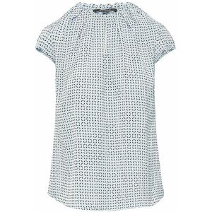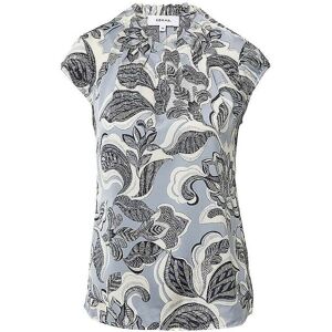 Damen Bluse mit Allover Print Kurzarm Rundhalskragen mit Raffung V-Ausschnitt und Schließt mit verdeckter Knopf Allover-Print Reguläre Passform Farbbezeichnung: Blue Material: 95% Polyester, 5% Elasthan Die Marke Comma ist Mitglied der Fair Wear Foundation.