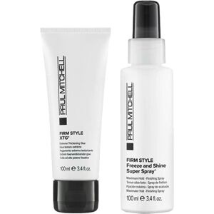 Das Paul Mitchell Firm Style Set beinhaltet: Paul Mitchell Firm Style XTG 100 mlPaul Mitchell Firm Style Freeze and Shine Super Spray 100 ml Stark fixierende Paste. Extrem verdickend und strukturgebend. Schnell trocknend für einfaches Stylen in kürzester Zeit. Mit stark festigenden Inhaltsstoffen, ideal für extreme Looks. Fixiert jedes Styling und sorgt für lange Haltbarkeit. Anwendung: Eine kleine Menge in den Handflächen verreiben, um es zu aktivieren. Auf trockenem oder feuchtem Haar anwenden. Wie gewünscht stylen. Finishing Spray. Für langen, starken Halt und ein brillantes Finish. Stark festigende Wirkstoffe fixieren jedes Styling. Ideal für normales bis kräftiges Haar. Anwendung: Auf das fertige Styling sprühen. Firm Style Definition. Struktur. Kontrolle. Perfekt für feste Stylings.