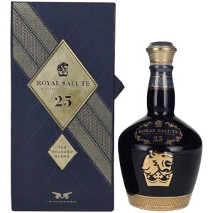 Royal Salute 25 Years Old The Treasure Blend ist ein wahres Meisterwerk der Blended Scotch Whisky-Herstellung und eine exquisite Rarität für Kenner und Sammler. Dieser luxuriöse Whisky, der im Rahmen der Royal Salute-Serie abgefüllt wird, ist nach 25 Jahren der Reifung in speziell ausgewählten Fässern ein echtes Highlight der Whisky-Welt. Der 40% Vol. Alkoholgehalt sorgt für eine harmonische Balance, bei der sich die reichhaltigen Aromen perfekt entfalten. Der Treasure Blend ist nicht nur eine Hommage an die Tradition von Royal Salute, sondern auch an das handwerkliche Können der Blender. Dieser 25 Jahre alte Blend vereint einige der besten Whiskys aus der Speyside, den Highlands und den Lowlands, was ihm eine komplexe und vielschichtige Struktur verleiht. Die langsame Reifung und die exquisite Fasswahl aus amerikanischen Eichenfässern und Sherryfässern geben diesem Blend seine samtige Textur, warmen Vanillenoten und fruchtigen Aromen, die ihn zu einem unvergleichlichen Erlebnis machen. Dieser exklusive Whisky wird in einer eleganten Geschenkbox angeboten, die ihn zu einem perfekten Geschenk für besondere Anlässe macht oder als Sammlerstück in jeder Whisky-Sammlung glänzt. Mit einer limitierten Anzahl von Abfüllungen ist der Royal Salute 25 Years Old ein luxuriöses und kostbares Vergnügen für wahre Whisky-Liebhaber. Farbe: Tiefes Gold mit bernsteinfarbenen Reflexen. Nase: Aromen von gereiften Früchten, dunklem Honig, Eiche und einer leichten Gewürznote, die von der Sherrysüße wunderbar ergänzt werden. Geschmack: Vollmundig und geschmeidig, mit Aromen von dunklen Beeren, getrockneten Früchten, Vanille und einer angenehmen Eichenwürze, die das Geschmackserlebnis intensiv und harmonisch gestalten. Abgang: Langanhaltend und weich, mit einer eleganten Mischung aus fruchtiger Süße, Vanille und einer subtilen Holz- und Gewürznote, die den Abgang auf luxuriöse Weise abrunden. Royal Salute 25 Years Old The Treasure Blend eignet sich hervorragend für den puristischen Genuss oder mit einem Tropfen Wasser, um die Aromen noch weiter zu intensivieren. Zu gereiftem Käse wie Pecorino oder Comté, sowie zu dunkler Schokolade und fruchtigen Desserts wie Crème Brûlée oder Tarte Tatin entfaltet dieser Whisky seine Aromen perfekt. Auch zu exklusiven Gerichten wie gegrilltem Wagyu-Rind oder gebratenem Lamm zeigt dieser Whisky seine Vielseitigkeit und hebt das kulinarische Erlebnis auf ein neues Niveau.