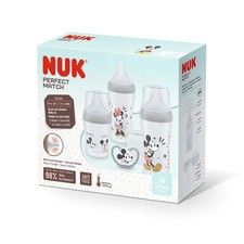 NUK Perfect Match Disney Mickey Mouse Set, , Babyflaschen für Kinder, Immer dann, wenn es nicht möglich ist, das Baby direkt an der Brust zu stillen, können Sie die Babyflasche NUK Perfect Match Disney Mickey Mouse Set verwenden. Die speziell angepasste Form des Schnullers und der Flasche gibt dem Kind ein Gefühl, als würde es direkt aus der Brust saugen. Eigenschaften: die enthaltenen Produkte sind auch für Neugeborene geeignet eignet sich perfekt als Geschenk zarter Milchsauger Das Set beinhaltet: NUK Perfect Match Flasche mit Temperaturkontrolle 2x260 ml NUK Space 0-6 m Schnuller 1 St. NUK Perfect Match Flasche mit Temperaturkontrolle 150 ml