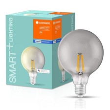 Klassische Globe-Form mit Glühwendel-Design mit Bluetooth-Technologie. Produkteigenschaften: LED-Lampe mit intelligenter kabelloser Steuerungstechnik, Verfügbar mit klarem oder bernstein-gold getöntem Glaskolben, Steuerbar über LEDVANCE SMART+ App (mit mindestens Android 6.0 oder iOS 11.0), Für vollen Funktionsumfang bei Steuerung über Apple Home App Verbindung mit Apple TV (ab tvOS 10) oder iPad (ab iOS 10) notwendig, Dimmbar, Netzwerkprotokoll: Bluetooth, Lebensdauer: bis zu 20.000 h, Dein Smart Home hört aufs Wort – Nutze Google Assistant und steuere dein Licht per Sprachbefehl, Produktvorteile: Lampen mit innovativer LED-"Filament"-Technologie, Einfache Installation und Nutzung, Bis zu 80 % weniger Energieverbrauch gegenüber Halogenlampen, Enthält kein Quecksilber, Anwendungsgebiete: Allgemeinbeleuchtung, Außenanwendungen nur in geeigneten Leuchten, Technische Ausstattung: Für Steuerung über LEDVANCE SMART + App Android-Smartphone (ab Android 6.0) erforderlich, Für Steuerung über Apple Home App iPhone (ab iOS 10), iPad (ab iOS 10), Apple TV (ab tvOS 10) oder Apple Watch (ab watchOS 2) erforderlich, Technische Daten: Länge: 168 mm, Breite: 124 mm, Durchmesser: 124 mm, Nettogewicht: 100 g, Sockel: E27, Nennspannung: 240 V, Nennstrom: 50 mA, Bemessungsleistung: 6 W, Energieverbrauch: 6 kWh/1000, Farbtemperatur: 2500 K, Lichtfarbe: Warm weiß, Abstrahlwinkel: 300 °, Lichtstrom: 540 lm, Farbwiedergabe: 80 CRI, Lebensdauer: 15000 h, Schaltzyklen: 100000, Energieeffizienzklasse: F, Dimmbar: Ja, EAN: 4058075486164