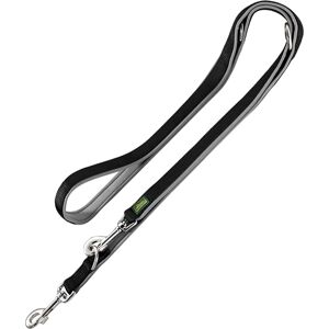 Die wetterfeste Führleine mit Handschlaufe von HUNTER kombiniert Komfort, Funktionalität und Ästhetik: Auf der einen Seite aus strapazierfähigem Nylon gefertigt, bietet die andere Seite eine angenehm weiche Polsterung aus textilummanteltem Neopren. So eignet sich die Leine ideal für gemeinsame Spaziergänge oder sportliche Aktivitäten im Freien. Gleichzeitig bietet die Führleine eine günstige Haptik und liegt komfortabel in der Hand. Die schwarz-graue HUNTER Neopren Führleine ist in zwei Varianten erhältlich: In der Länge von 110 cm verfügt sie über einen Karabiner aus vernickeltem Stahl, der am passenden Halsband oder Neopren Geschirr angebracht werden kann. Wer einen weiteren Radius inklusive Größenverstellbarkeit bevorzugt, wählt die 200 cm lange Leine, die mit drei Ösen und einem zusätzlichen Karabiner ausgestattet ist. So kann alternativ ein Radius von rund 105 cm, 129 cm oder 172 cm erzielt werden – ganz nach individuellem Bedarf! HUNTER Neopren Führleine schwarz/grau im Überblick: Führleine mit Handschlaufe für Hunde Strapazierfähig: aus robustem Nylon-Material gefertigt Weiche, angenehme Haptik: liegt komfortabel in der Hand dank innenseitiger Polsterung aus textilummanteltem Neopren Für Alltag Sport: hohe Widerstandskraft, auch bei ruckartigen Bewegungen schneidet die Leine nicht ein In 2 Varianten: einfach mit einem Karabiner oder längenverstellbar mit 3 O-Ringen, kann je nach Bedarf kurz, mittel oder lang eingestellt werden Wetterfest und waschbar Material: Leine: Nylon, Neopren Ringe/Karabiner: vernickelter Stahl Farbe: schwarz/grau Maße: Einfache Leine: L 100 cm x B 15 mm Längenverstellbare Leine: L 200 cm x 20 mm, verkürzbar auf 172, 128 oder 105 cm Die passenden HUNTER Halsungen aus der Serie HUNTER Neopren schwarz/grau finden Sie unter folgenden Links: HUNTER Neopren Halsband schwarz/grau HUNTER Neopren Geschirr schwarz/grau