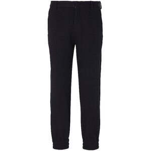 Damen Hose aus strukturiertem Viskose-Mix Mittlere Leibhöhe Schließt mit Haken und Reißverschluss Zwei Eingrifftaschen Geknöpfte Gesäßleistentaschen Locker geschnitten Saumende mit elastischem Abschluss Unifarben Farbbezeichnung: Blu Navy Material: 27% Viskose, 25% Polyacryl, 20% Polyamid, 3% Elasthan