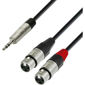 Audiokabel REAN 3,5 mm Klinke stereo auf 2 x XLR female 1,8 m: Audiokabel mit 3,5 mm Stereoklinke und zwei female XLR, alle Steckverbinder sind von REAN © und das einfach abgeschirmte Audiokabel zeichnet sich durch optimale Audiowerte und robusten Aufbau aus. Für den Anschluss von Pocketrecordern oder anderen Geräten mit 3,5 mm Klinkeneingang. Technische Daten: Produktart: Kabel Konfektioniert, Typ: Audiokabel, Kabellänge: 1,8 m, Farbe: schwarz, Kabeldurchmesser: 4,3 mm, Leiterquerschnitt: 0,22 mm², Anschluss 1-A: XLR, Geschlecht Anschluss 1-A: Female, Polanzahl Anschluss 1-A: 3, Kontakte Anschluss 1-A: versilbert, Hersteller Anschluss 1-A: Rean, Modellnummer Anschluss 1-A: RC3F, Anschluss 1-B: XLR, Geschlecht Anschluss 1-B: Female, Polanzahl Anschluss 1-B: 3, Kontakte Anschluss 1-B: versilbert, Hersteller Anschluss 1-B: Rean, Modellnummer Anschluss 1-B: RC3F, Anschluss 2: 3,5 mm Klinke, Geschlecht Anschluss 2: Male, Polanzahl Anschluss 2: 3, Kontakte Anschluss 2: vernickelt, Hersteller Anschluss 2: Rean, Modellnummer Anschluss 2: RTP3C