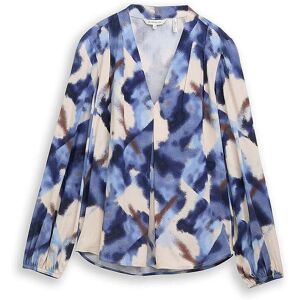 Gemusterte Bluse mit V-Ausschnitt, Faltendetail auf der Vorderseite und elastischem Gummibund am Ärmelsaum. Aus einem fließenden Viskose-Stoff. Damen Blusenshirt aus reiner Viskose  V-Ausschnitt  Langarm  Allover Print  Lockere Passform  Farbbezeichnung: Blue Blurry Argyle Material: 100% Viskose