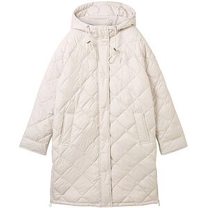 Damen Mantel mit Stepp-Details Kapuze mit Tunnelzug Stehkragen Langarm Raglanärmel Schließt mit Zwei-Weg-Reißverschluss Wasserabweisend Mit zwei seitlichen Reißverschlusstaschen Unifarben Gerade Passform Farbbezeichnung: Dusty Beige Material: 90 % Polyester, 10 % Elasthan