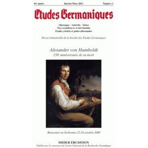 Brand : KLINCKSIECK, Binding : paperback, Edition : 1, Label : Études germaniques - N°1/2011 : Alexander von Humboldt - 150e anniversaire de sa mort, medium : paperback, numberOfPages : 176, publicationDate : 2011-04-09, languages : french, ISBN : 2252038055