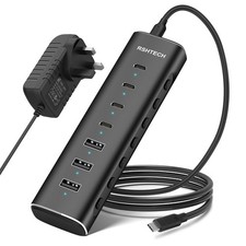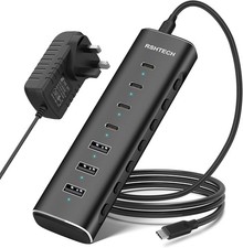 RSHTECH 7-Port-betriebener USB-C-Hub mit 10 Gbit/s USB-C 3,2-Anschlüssen, individuelle Touch-Switches, 5 V/3 A Netzteil, Laptop-USB-Splitter