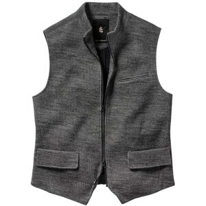 Wir wünschen gute Unterhaltung. Die Weste ist für Events ebenso zu haben wie fürs Kreativmeeting oder Familientreffen mit weißer Tischdecke. Ihr korrekter Schnitt samt Stehkragen und von oben eingreifbarer Pattentaschen macht sie über jeden Ernsthaftigkeits-Zweifel erhaben. Der weiche, klimatisierende Woll-Jacquard und der je nach Anlass und Temperatur schließbare Zipper funktionieren drinnen wie draußen. Macht von eingelebter Jeans bis feiner Chino alles mit.