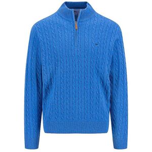 Herren Strickpullover aus reiner Baumwolle  Troyerkragen  Langarm  Kurzer Reißverschluss  Logostickerei auf der Brust  Bündchen an Ärmel und Saum  Unifarben  Zopfstrickmuster  Gerade Passform  Farbbezeichnung: Strong Blue  Material: 100% Baumwolle