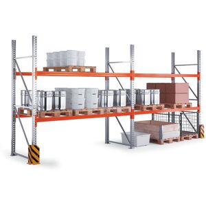 die Regale sind zur Warenlagerung auf Paletten vorgesehen Regaltiefen 1100 mm für quere Palettenlagerung Höhe 2700 bis 5500 mm mit 3 - 4 Lagerebenen (gerechnet inkl. Fußboden) Länge 1825 und 2700 mm vorgesehen für 2 - 3 Palettenplätze in einer Zelle Regalrahmen aus verzinkten Stahlprofilen mit Lochung zum Aufhängen von Trägern im Raster von 50 mm Träger aus Stahlprofilen orange Pulverfarbe RAL 2001 die Palettenregale werden als Komplettsystem von Regalrahmen, Trägern und Verstrebungen angeboten die Regale können mit Zusatzfeldern oder durch Erwerb von weiterem Zubehör - Querträger, Holzspanfachböden, Stahlroste oder Stahlplatten - erweitert werden die angegebenen Traglasten gelten bei gleichmäßiger Lastverteilung! die Regalstatik wurde gemäß EN15512 getestet Eigenschaften: Höhe (mm): 5500, Länge (mm): 1825, Tragfähigkeit der Zelle (kg): 2146, Tragfähigkeit pro Reihe (kg): 6438, Ausführung: Grundregal, Etagen: 3, Tiefe (mm): 800