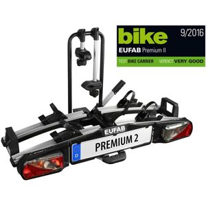 EUFAB Eufab Premium II Menge: 2 number_of_studs_9960: Fahrradträger: abklappbar: Dieser zusammenklappbare Fahrradträger hat einen Abklappmechanismus mit Fußpedalbedienung und ist für alle Fahrräder inkl. Oversize und Räder mit Y-Rahmen geeignet. Er bietet eine einfache und schnelle Montage, sowie eine stabile und sichere Befestigung und Stabilität durch Rahmenhalter, Radstopper und Haltegurte. Eigenschaften: Farbe: silber/schwarz max. Nutzlast: 60kg Eigengewicht: ca. 17kg Abmessung (BxTxH): ca. 115 x 54 x 67 cm zusammengeklappt: ca. 30 x 55,5 x 67 cm