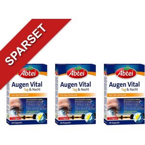 Anwendungsgebiet von Abtei Augen Vital Tag & Nacht KapselnAbtei Augen Vital Tag & Nacht Kapseln ist ein Nahrungsergänzungsmittel mit Lutein, Zeaxanthin, Omega-3-Fettsäuren, Vitaminen und Mineralstoffen. Das Auge ist eines der wichtigsten Sinnesorgane des menschlichen Körpers und ist Tag und Nacht gefordert. Abtei Augen Vital Tag & Nacht Kapseln unterstützt die Augen mit ausgewählten Nährstoffen, die der Körper nicht alle selbst bilden kann - damit die Sehfunktion möglichst lange sowohl bei Tag als auch bei Nacht erhalten bleibt.*Vitamin A trägt zur Aufrechterhaltung der normalen Sehkraft beiVitamin C, E, B2, Zink, Selen, Kupfer leisten eine wichtige Schutzfunktion für die Zellen bei oxidativem StressDHA gehört zu den wichtigsten Omega-3-Fettsäuren und unterstützt bei einer täglichen Aufnahme von 250 mg den Erhalt der SehkraftZink leistet einen Beitrag zur normalen Sehkraft und unterstützt den Vitamin-A-StoffwechselWirkstoffe / Inhaltsstoffe / ZutatenZutaten von Abtei Augen Vital Tag & Nacht Kapseln:Gelatine (Rind) Calcium-L-ascorbat pflanzliches Öl (Distel, Sonnenblumen) Fischöl (14 %) Sojaöl Feuchthaltemittel Glycerin Verdickungsmittel Bienenwachs, weiss und gelb Lutein Zeaxanthin Vitamin E Zinkoxid Vitamin A Vitamin B2 Kupfersulfat Natriumselenit Emulgator Sojalecithine Farbstoff Eisenoxide und Eisenhydroxide. Nährstoffe pro Kapsel % der Tageszufuhr pro Kapsel* Vitamin E12 mg α-TE 100 % Vitamin C80 mg 100 % Vitamin A800 µg RE 100 % Vitamin B21,4 mg 100 % Zink10 mg 100 % Selen55 µg 100 % Kupfer300 µg 30 % * Referenzmenge nach EU-Lebensmittelinformationsverordnung Weitere Inhaltsstoffe pro Kapsel % der Tageszufuhr pro Kapsel Lutein 20 mg** Zeaxanthin 1 mg** DHA 40 mg** ** keine Referenzmenge vorhandenGegenanzeigenBei bekannter Überempfindlichkeit gegenüber einem der oben genannten Inhaltsstoffe sollte dieses Produkt nicht angewendet werden.DosierungV