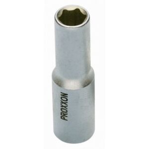 PROXXON 1/2 Zoll Tiefbett-Steckschlüsseleinsatz, 10 mm Antrieb [Zoll]: 1/2: Zoll Dieser 1/2 Zoll Tiefbett-Steckschlüssel-Einsatz ist für lang überstehende Gewindebolzen geeignet. Dieser Einsatz hat einen optimalen Oberflächenschutz, denn er wurde 2x vernickelt und 1x verchromt. Der Antrieb erfolgt bei diesem Einsatz nicht über die Ecken, sondern über die Flanken, für hohe Kraftübertragung, Kanten und Muttern bleiben unberührt. Eigenschaften: Material: CrV-Stahl Größe: 10 mm Inhalt: 1 Stk.