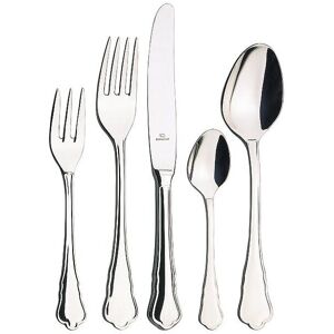Ruhm und Glanz im glorreichen Stile. Royal Chippendale wurde gegen Ende des 19. Jahrhunderts in königlich-englischem Stil entworfen und verkörpert seitdem wie kein anderes Besteck die traditionelle, britische Tafelkultur auf höchster Ebene. Ein absolutes must have für alle Prinzen und Prinzessinnen. Material: 18/10 Nicro® poliert Set bestehend aus 6x Tafellöffel, 6x Tafelgabel, 6x Tafelmesser, 6x Kaffeelöffel, 6x Kuchengabel