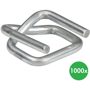 bei der Bündelung mittels einer PES- oder PP-Bandes und bei der Verwendung von „B“-Stahlklemmen wird eine sehr feste und dabei zerlegbare Verbindung gebildet im Laufe des Transports kann diese Verbindung nach den aktuellen Anforderungen durchgehend nachgezogen oder gelöst werden die Klemmen sind wiederverwendbar und dadurch sparen sie Kosten und schonen die Umwelt galvanisierte Klemmen sind für die Außenverwendung besser geeignet phosphatierte Klemmen haben eine höhere Festigkeit, die Verbindung ist beständiger gegen Schlupfkräfte, sie sind für die Außenverwendung nicht geeignet Eigenschaften: Packung (Stk.): 1000, Breite (mm): 19, Klammertyp: B - plattiert, Für den Bandtyp: PP / PES