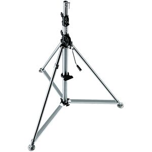 Manfrotto Stativsortiment beinhaltet mehrere Produktlinien, die je nach vorgesehenem Einsatzzweck und der aufzunehmenden Scheinwerfertypen in Design und Materialauswahl differieren. Diese Supports lassen sich anhand der verwendeten Materialien und zweier Rohrtechnologien unterscheiden: elektrogeschweißtes Aluminium und Stahl. Besonderes Augenmerk wurde auf technische Mehrfachlösungen wie pneumatische Dämpfung und Ausgleichbeine gelegt, die diese Stative einzigartig machen. Die aktuellen Modelle erlauben Auslegerweiten von 21cm bis 550cm mit Nutzlasten von 1,5kg bis 200kg. Belastbarkeit in kg: 80, Maximale Belastbarkeit in voll ausgefahrenem Zustand (Neigung 5°): 80kg @ 366cm, Min. Höhe in cm: 156, Max. Höhe in cm: 366, Basedurchmesser in cm: 180cm , Durchmesser geschlossen:179cm, Socket size: 28mm, Heavy lift stand with strenghtened stainless steel column and legs, chrome steel risers and geared column, 3 Sections Ø: 70, 60, 50mm, 2 risers extend simultaniously at an elevation of 4.4cm per handle turn, Safety cable ensures simultaneously retrieval of all sections , Rapid adjustment. Leg Ø: 35mm, 1 levelling leg, Patented