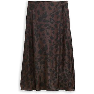 Damen High Waist Midi-Rock aus einem fließenden, leicht glänzenden Satin-Stoff Hohe Taillenbund Verdeckter Reißverschluss in der Seitennaht Allover Leopardenprint Länge: Ca. 84 cm Farbbezeichnung: Brown Black Big Leo Print Material: 62% Viskose, 38% Polyester