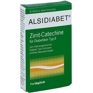 Anwendungsgebiet von Alsidiabet Zimt Catechine für Diabetiker Typ IIAlsidiabet Zimt Catechine für Diabetiker Typ II ist ein Lebensmittel für besondere medizinische Zwecke (bilanzierte Diät) mit 3,7% Catechinen. Bei Personen mit einem gestörten Zuckerstoffwechsel ist die Fähigkeit, Zucker aus dem Blut in die Zellen aufzunehmen, in der Regel eingeschränkt. Damit verbleibt mehr Zucker aus der täglichen Nahrung im Blut und erhöht so den Blutzuckerspiegel. Für Diabetiker Typ II ist es deshalb besonders wichtig, bei ihrer Ernährung auf den Blutzuckerspiegel zu achten. Eine klinische Studie mit ALSIDIABET® Zimt-Catechinen konnte zeigen, dass eine Ernährung mit besonderen Pflanzenstoffen aus der Rinde des Zimtbaumes (Catechine) in Kombination mit den Mikronährstoffen Niacin und Chrom ernährungs-physiologisch den Langzeitzuckerwert verbessert. Bei Personen mit einem erhöhten Blutzuckerspiegel liegt ein medizinisch bedingter Nährstoffbedarf vor, der über die normale Ernährung dauerhaft nicht gedeckt werden kann. ALSIDIABET® Zimt-Catechine enthält Catechine in standardisierter Form, Niacin und Chrom und eignet sich aufgrund seiner Eigenschaften und Merkmale zum Diätmanagement bei Diabetes Typ II mit einem erhöhten Blutzuckerspiegel.Wirkstoffe / Inhaltsstoffe / ZutatenZutaten von Alsidiabet Zimt Catechine für Diabetiker Typ II: Zimtextrakt (enthält Maltodextrin) 71%, Kapselhülle Hydroxypropylmethylcellulose, Niacin, Chrom-III-chlorid, Trennmittel Magnesiumsalze der Speisefettsäuren. Nährwertangaben: pro Kapsel pro 100 g Brennwert 5 kJ (1 kcal) 1099 kJ (259 kcal) Fett < 0,5 g 0,8 g davon gesättigte Fettsäuren < 0,1 g 0,7 g Kohlenhydrate < 0,5 g 52 g davon Zucker < 0,5 g 7,9 g Eiweiß (Zimtextrakt) < 0,5 g 1,5 g Niacin 18 mg 3674 mg Chrom 60 μg 12245 μg Natrium < 1,0 mg < 1,0 mg Zimtextrakt 350 mg 71429 mg standardisiert auf oligomere Catechine 18 mg 3674 mg<