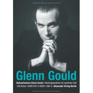 Binding : Taschenbuch, Edition : 1, Label : Alexander Verlag Berlin, Publisher : Alexander Verlag Berlin, medium : Taschenbuch, numberOfPages : 128, publicationDate : 2012-06-21, authors : Jonathan Cott, Glenn Gould, languages : german, ISBN : 389581296X