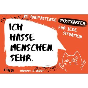 Brand : RIVA, Binding : card_book, Label : Ich hasse Menschen. Sehr. – 20 (un)passende Postkarten für jede Situation : Zum Stressabbau und für mehr Gelassenheit. Humorvolles Geschenk für Freunde, Kollegen oder Familie, medium : card_book, numberOfPages : 21, publicationDate : 2024-11-19, releaseDate : 2024-11-19, languages : german, ISBN : 3742321714