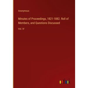 Binding : hardcover, Label : Minutes of Proceedings, 1821-1882. Roll of Members, and Questions Discussed : Vol. IV, medium : hardcover, numberOfPages : 380, publicationDate : 2024-04-26, releaseDate : 2024-04-26, languages : english, ISBN : 3385433444