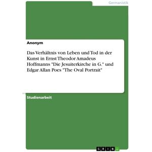 Brand : GRIN Verlag, Binding : paperback, Edition : 1., Label : Das Verhältnis von Leben und Tod in der Kunst in Ernst Theodor Amadeus Hoffmanns Die Jesuiterkirche in G. und Edgar Allan Poes The Oval Portrait, medium : paperback, numberOfPages : 28, publicationDate : 2024-11-01, languages : german, ISBN : 3389083367