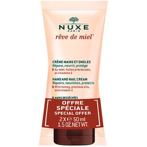 Die seidige, nicht fettende Handcreme mit Honig, hochwertigen Ölen und Vitamin E versorgt die Haut, repariert trockene und strapazierte Hände und schützt vor vorzeitiger Hautalterung. Tag für Tag werden die Hände weicher und die Nägel kräftiger. Honig und wertvolle Pflanzenöle machen Ihre Haut wunderbar geschmeidig. Die Creme duftet zart nach Honig und zieht im Handumdrehen ein. Das Rêve de Miel Duo Hand- und Nagelcreme enthält: 2 x Rêve de Miel Hand- und Nagelcreme, 50 ml Wertvoller Honig repariert und nährt Ihre trockenen, strapazierten HändeHochwertige Pflanzenöle wirken rückfettend und nährend und dank Vitamin E wird vorzeitiger Hautalterung vorgebeugtZart schmelzende, schnell einziehende Textur mit einem feinen Honig-Duft Hauptwirkstoffe: Sonnenblumenölderivat, Avocado-, Muskatrosen- und Calendulaöl, Gerstenextrakt, Arganöl, Karitébutter, Süßmandelöl, Akazienhonig, Vitamin E. Ohne Parabene, ohne mineralische Öle. Anwendung: Tragen Sie die Hand- und Nagelcreme so oft wie erforderlich auf. Insbesondere im Nagelbettbereich einmassieren.