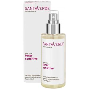 Anwendungsgebiet von Santaverde Aloe Vera Toner sensitive SpraySantaverde Aloe Vera Toner sensitive Spray wirkt beruhigend, hydratisierend und intensiviert die Wirkung der nachfolgenden Pflege. Reiner Aloe Vera Saft spendet sofort natürliche Feuchtigkeit. Zart duftendes Rosenblütenhydrolat beruhigt sensible Haut und lindert Rötungen sowie Irritationen. Hinterlässt die Haut harmonisiert und erfrischt. Besonders geeignet für sensible Haut. Das Geheimnis der Santaverde Kosmetik ist purer, einzigartig wirkstoffreicher Aloe Vera Saft aus unserem eigenen, kontrolliert biologischen Anbau in Andalusien. Wir setzen den reinen Saft anstelle der üblichen Hauptkomponente Wasser in unseren Rezepturen ein, ergänzt um wertvolle Pflanzenöle und -extrakte. So erschaffen wir eine einzigartige Wirkung für die Gesundheit und Schönheit Ihrer Haut. Alle Kosmetikprodukte tragen das NATRUE-Siegel für zertifizierte Naturkosmetik, das Leaping Bunny Siegel als Zeichen gegen Tierversuche und das Siegel der Vegan Society. Frei von synthetischen Duft-, Farb- und Konservierungsstoffen. Aloe Vera Saft - feuchtigkeitsspendend, entzündungshemmend, regt die Zellregeneration an Rosenblütenhydrolat - feuchtigkeitsspennend, ausgleichend, antibakteriell, harmonisierend Wirkstoffe / Inhaltsstoffe / ZutatenInhaltsstoffe (INCI) von Santaverde Aloe Vera Toner sensitive Spray:Aloe Vera Saft*, Rosenblütenhydrolat*, Weingeist*, Weidenrindenextrakt, pflanzl. Levulinsäure, pflanzl. Natriumlevulinat, pflanzl. Glycerin. *Aus kontrolliert biologischem AnbauGegenanzeigenBei bekannter Überempfindlichkeit gegenüber einem der oben genannten Inhaltsstoffe sollte das Produkt nicht verwendet werden. DosierungAnwendungsempfehlung von Santaverde Aloe Vera Toner sensitive Spray: Santaverde Aloe Vera Toner sensitive Spray auf die gereinigte Haut von Gesicht, Hals und Dekolleté sprühen. Anschließend Serum, Creme oder Öl in die noch tonerfeuchte Haut einmassieren.