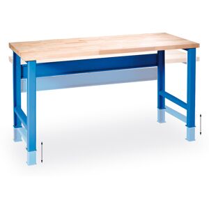 Die Container werden direkt am unteren Teil der Arbeitsplatte angeschraubt. Die Schrank und der Container mit einer Höhe von 810 mm bilden im Falle ihrer Verwendung direkt ein festes Tischbein. Die Arbeitstischplatte ist aus einer massiven Fugenplatte aus Hartholz mit einer Stärke von 40 mm hergestellt. Das höhere Plattengewicht gewährleistet gemeinsam mit den festen und stabilen Fußgestellen eine sehr gute Stabilität des Tischs, die auch den anspruchsvollsten Tätigkeiten genügt. Die Fußgestelle können aus zwei Typen ausgewählt werden, klassisch fest oder höhenverstellbar. Bei der Verwendung von festen Fußgestellen beträgt die Gesamttischhöhe 850 mm, bei der Verwendung von höhenverstellbaren Fußgestellen kann die Höhe dann bis zu 1050 mm in Schritten von 50 mm verstellt werden. Eigenschaften: Höhe (mm): 850 - 1050, Tiefe (mm): 800, Konstruktionsfarbe: blau RAL 5015, Farbe: blau, Länge (mm): 1500, Regalboden: -, Gestelltyp: höhenverstellbare Unterlage, Ausstattung: -, Tragfähigkeit der Arbeitsplatte (kg): 500, Material der Arbeitsplatte: Buche-Leimholzplatte, Anzahl Schubladen: 0, Anzahl Schränke: 0, Antriebstyp: mechanisch, Möbelkollektion: GD