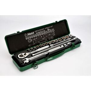 Anzahl der Werkzeuge: 19. Buchse [Zoll]: 3/8. Hersteller: HANS. Herstellernummer: 3619-2M. Index: 3619-2M. Metergröße [mm]: 10; 11; 12; 13; 14; 15; 16; 17; 18; 19; 21; 6; 7; 8; 9. Profil: 6-eckig. Verpackung / Lagerung: in einer Metallbox. Werkzeugtyp: Buchse/Sechskant; Erweiterung; Gelenk; Knopf; Rassel.