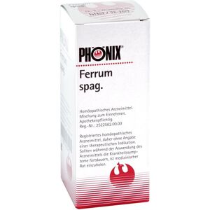 Wirkstoffe / Inhaltsstoffe / Zutaten200 µl Ferrum sesquichloratum solutum (hom./anthr.)100 µl Acidum arsenicosum spagyrisch Glückselig (hom./anthr.)90 µl Chelidonium majus ex herba spagyrisch Glückselig (hom./anthr.)90 µl Cuprum sulfuricum (hom./anthr.)90 µl Stibium sulfuratum nigrum (hom./anthr.)70 µl Bolus alba spagyrisch Glückselig (hom./anthr.)40 µl Arnica e floribus spagyrisch Glückselig (hom./anthr.)40 µl Aurum chloratum (hom./anthr.)30 µl Digitalis purpurea spagyrisch Glückselig (hom./anthr.)30 µl Dryopteris filix mas ex herba spagyrisch Glückselig (hom./anthr.)30 µl Hydrargyrum bichloratum spagyrisch Glückselig (hom./anthr.)30 µl Rosmarinus officinalis spagyrisch Glückselig (hom./anthr.)30 µl Tartarus depuratus spagyrisch Glückselig (hom./anthr.)30 µl Valeriana officinalis spagyrisch Glückselig (hom./anthr.)30 µl Zincum metallicum (hom./anthr.)Ethanol Hilfstoff (+) Zu Risiken und Nebenwirkungen lesen Sie die Packungsbeilage und fragen Sie Ihre Ärztin, Ihren Arzt oder in Ihrer Apotheke. Phönix Ferrum spag. Tropfen sind apothekenpflichtig und können in Ihrer Versandapotheke www.juvalis.de erworben werden.