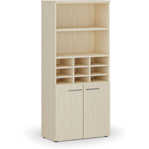 aus laminierter Holzspanplatte mit einer Stärke von 18 mm und mit einer ABS-Kante ausgestattet feste Regalböden im Abstand von 350 mm, Tragkraft 36 kg Ausgleichsgleiter bis zu einer Höhe von 15 mm Handgriffe aus poliertem Aluminium einfache Montage gemäß beiliegender Anleitung Eigenschaften: Dekor: Birke, Farbe: Birke, Korpusfarbe: Birke, Türfarbe: Birke, Farbe der inneren Teile: Birke, Korpusdekor: Birke, Dekor Tür/Schubladen: Birke, Dekor der inneren Teile: Birke, Höhe (mm): 1781, Breite (mm): 800, Tiefe (mm): 420, Anzahl Regalböden: 3, Maße B x T x H (mm): 800 x 420 x 1781, Türentyp: Flügel, Fächer: 9, Innenmaße des Fachs B x T x H (mm): 242 x 380 x 94,5, Abschließbar: Nein, Möbelkollektion: PRIMO WOOD