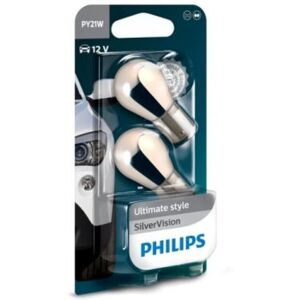 Art der Glühlampe: PY21W. Hersteller: PHILIPS. Herstellernummer: 12496SVB2. Index: PHI 12496SV/2B. Lampentyp: Sekundär. Lichtfarbe: orange. Linie: Silver Vision. Nennleistung [W]: 21. Spannung [V]: 12. Steckdosentyp: BAU15S. Stückzahl : 2. Verpackung: Blister.