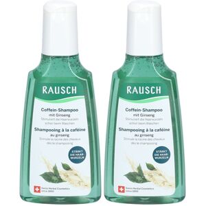 Set enthält2x RAUSCH Coffein-Shampoo mit Ginseng 200 mlRAUSCH Coffein-Shampoo mit Ginseng Hilfe bei Haarausfall Das Shampoo bei Haarausfall. Es stimuliert und stärkt die Haarwurzeln schon beim Waschen und verwöhnt die Kopfhaut gleichzeitig mit einer angenehmen Erfrischung. In Kombination mit dem Coffein-Kopfhaut-Intensiv-Fluid mit Ginseng oder der Original Haartinktur ist es die perfekte Formel bei geschwächten Haarwurzeln. Mit Coffein sowie auserwählten Extrakten aus Ginseng, Guarana und Tigergras. Belebendes Shampoo bei Haarausfall Stärkt den Haarnachwuchs Hergestellt in der Schweiz mit hauseigenen Extrakten aus Ginseng, Guarana, Tigergras und Coffein Silikonfrei, vegan und mit 91 % Inhaltsstoffen natürlichen Ursprungs Verpackung in Originalgrösse aus 100 % recyceltem PET Energiekick ahoi! Der Spezialist bei Haarausfall ist wie ein erfrischender Hauch von Natur für Dein Haar. Mit seinem vitalisierenden Duft gibt er der Kopfhaut neue Power und stärkt die Haare von der Wurzel an. Das Coffein-Shampoo mit Ginseng reinigt von Haarausfall betroffene Kopfhaut besonders mild mit naturbasierten Tensiden. Es kräftigt den Haarboden schon bei der Haarwäsche, für gestärkten Haarnachwuchs. Kombiniert mit dem Conditioner und dem Fluid aus der Coffein-Linie mit Ginseng wird die Durchblutung der Kopfhaut nachhaltig verbessert und das Haar griffiger und stärker. Eine Flasche des Power-Shampoos ist zudem äusserst ergiebig: Es reicht je nach Haarlänge für 30 – 45 Anwendungen. Die RAUSCH Expertinnen aus Kreuzlingen am Bodensee haben für das belebende Shampoo die besten Inhaltsstoffe aus der Natur ausgesucht. Die silikonfreie und vegane Formulierung besteht zu 91 % aus Inhaltsstoffen natürlichen Ursprungs, darunter Coffein und hochwertige Kräuterextrakte aus Ginseng, Guarana und Tigergras. Unter der Dusche versprüht der Muntermacher einen belebenden Duft nach Minze, Ingwer und schwarzem Pfeffer. Inhaltsstoffe: Aqua, Sodium Laureth Sulfate (ex Coco), Glycerin, Coco-Betaine, Lauryl Lactate, Caffeine, Centella Asiatica Extract, Panax Ginseng Root Extract, Paullinia Cupana Seed Extract, Panthenol, Lauryl Methyl Gluceth-10 Hydroxypropyldimonium Chloride, PEG-120 Methyl Glucose Dioleate, Benzoic Acid, Sodium Chloride, Sodium Hydroxide, Dehydroacetic Acid, Benzyl Alcohol, Parfum, Limonene, Sodium Benzotriazolyl Butylphenol Sulfonate, CI 47005, CI 42090, CI 14700 Anwendung: Eine haselnussgrosse Menge Shampoo mit Wasser in den Händen aufschäumen. Sorgfältig ins nasse Haar und die Kopfhaut einmassieren. Gründlich ausspülen. Inhalt: 200 ml Herstellerdaten: RAUSCH AG KREUZLINGEN Bärenstrasse 12 8280 Kreuzlingen SWITZERLAND