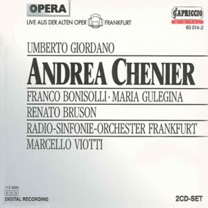 Binding : Audio CD, Label : Capriccio (EMI), Publisher : Capriccio (EMI), NumberOfDiscs : 2, NumberOfItems : 2, Format : Doppel-CD, medium : Audio CD, releaseDate : 1991-03-06, artists : Bonisolli, Viotti, Rso Frankfurt, composers : Umberto Giordano (Komponist)
