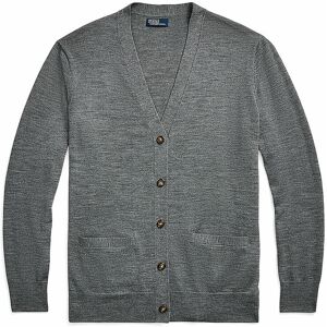 Herren Strickjacke aus reiner Merino-Wolle V-Ausschnitt Langarm Schließt mit Knopfleiste Tonale Logo-Stickerei auf der linken Brust Gerade Passform Hoher Tragekomfort Unifarben Farbbezeichnung: Heather Grey Material: 100% Merinowolle