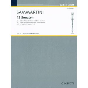 Schott Giovanni Battista Sammartini 12 Sonaten Heft 1: Sonaten 1-4 für 2 Alt-Blockflöten (Violinen) und Basso continuo, herausgegeben von Franz Julius Giesbert, mittlerer Schwierigkeitsgrad, ISMN 9790001099691, OFB 81, 23 x 30,5 cm, 24 / 12 / 12 / 4 Seiten