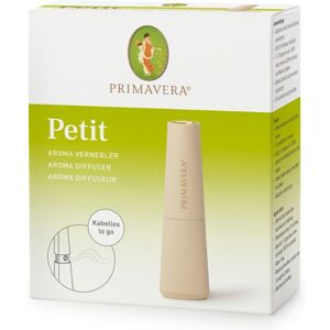 PRIMAVERA® Aroma Vernebler Petit Immer an Deiner Seite - klein, praktisch, elegant Der spontane Duftmoment für unterwegs! Auslaufsicher und in passend kleiner Größe für jede Hosentasche, schenkt der handliche Vernebler wohltuende Duftpausen im Alltag wo immer wir gerade sind. Das kabellose Gerät in elegantem Design liegt angenehm in der Hand, lässt sich mit einem einfachen Handgriff aktivieren und verzaubert sogleich die Sinne mit sanftem Duftnebel. So ist der Lieblingsduft immer greifbar nah und fördert das innere Gleichgewicht mit einer erholsam duftenden Mini-Auszeit. Zur idealen Dufterfahrung wird der Petit im Abstand von mindestes 10 bis 15 cm vor das Gesicht gehalten und während des Vernebelns langsam hin und her bewegt. Das Gerät wurde zur Beduftung in direkter Körpernähe konzipiert, kann aber auf kippsicherer, unempfindlicher Unterlage auch zur sanften Beduftung kleiner Räume mit einer Reichweite von ca. 2 m² dienen. Durch einfaches Aufschieben des Oberteils setzt die sanfte Ultraschallvernebelung ein und läuft anschließend dreißig Sekunden lang, gefolgt von einer Pause mit neunzig Sekunden. Dieser Intervallmodus bleibt so lange aktiv, bis der Deckel wieder durch Herunterschieben verschlossen wird oder das Gerät nach einer Stunde automatisch abschaltet. Ein kleines LED-Licht beginnt beim Einschalten zu leuchten und signalisiert die Aktivität des Geräts. Eine Wassertankfüllung von 8 ml reicht für etwa 1 Stunde dauerhaften Intervallbetrieb, was 30 Nebelphasen entspricht. Der leistungsstarke Akku ermöglicht bei mehrmaligem Nachfüllen des Wassers einen Dauerbetrieb von 8 Stunden. Mithilfe des mitgelieferten USB-Kabels kann der Akku an jeden Standard-USB-Port (z. B. Notebook, Powerbank, USB-Netzteil) angeschlossen und mit einer Ladezeit von nur 2 Stunden wieder vollständig aufgeladen werden. Dem Mini-Vernebler liegt ein praktischer Beutel aus Bio-Baumwolle zur geschützten Aufbewahrung bei. Anwendung Schritt 1 Deckel und Dichtung abnehmen und mit 8 ml Wasser befüllen Schritt 2 1-2 Tropfen einer 100 % naturreinen Duftmischung oder eines ätherischens Einzelöls ins Wasser geben und Deckel und Dichtung wieder aufsetzen. Schritt 3 Oberen Deckel nach oben Schieben - Gerät beginnt mit der Diffusion Oberen Deckel nach unten schließen - Gerät stoppt die Diffusion