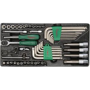 Anzahl Einsätze/Schubladen: 1+1+1 [3] / 1; G+F; type F. Anzahl der Werkzeuge: 50. Buchsengröße [Zoll]: 1/2; 1/4. Einsatztyp: Kunststoff. Einsätze Größe [mm]: 190x380. HEX Größe [mm]: 10; 1,5; 2; 2,5; 3; 4; 5; 6; 8. Hersteller: HANS. Herstellernummer: TT-1. Index: TT-1. Kappengröße [mm]: 4; 4,5; 5; 6; 7; 8; 9; 10; 11; 12; 13. Metergröße [mm]: 4; 5,5; 7. POZIDRIV Größe: PZ1; PZ2. Philips Größe : PH1; PH2. Profil: Flach, HEX, Philips PH, POZIDRIV PZ, TORX. TORX Größe: T25, T30, T40, T45, T50, T55. Werkzeugtyp: HEX-Schlüssel; Knopf; Nuß; Rassel; TORX-Schlüssel.