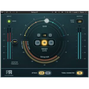 Waves Playlist Rider (ESD); Leveller-Plugin; Pegelglättung für verschiedene Audioquellen; automatische Zielwerteinstellung für die Lautstärke in Echtzeit; nondestruktive Anpassung bei gleichzeitiger Bewahrung der originalen Dynamik; schnelle oder langsame Attack-Zeit; Tonal Character-Algorithmus zum Ausgleichen klanglicher Unterschiede; Eingangsüberwachung mit Threshold zum Ausschließen leiser Passagen; kompatibel zu Wave eMotion LV1 und SuperRack
