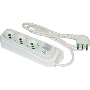 Marke und Modell : FANTON OMEGA ECO RELIFE Steckdosenleiste, Code 47420ECO. Hergestellt aus recyceltem Kunststoff Kabellnge : 1,5 Meter. Kabeltyp : 3G1 H05VV-F, was auf ein flexibles Kabel mit 3 Leitern (Phase, Neutralleiter und Erde) mit einem Querschnitt von 1 Quadratmillimeter hinweist, das fr den allgemeinen Gebrauch geeignet ist. Stecker : 2P+E 16A italienischer Winkelstecker, kompatibel mit italienischen Standardsteckdosen. Steckdosen : 4 italienische/deutsche Bypass-Steckdosen 2P+E 16A, zur Aufnahme italienischer oder deutscher Stecker. Beleuchteter zweipoliger Schalter : Ausgestattet mit einem leuchtenden zweipoligen Schalter fr einfache Steuerung und zustzliche Sicherheit. Weie Farbe . Verpackung : ECO RELIFE-Box. Diese OMEGA ECO RELIFE Steckdosenleiste ist eine praktische und sichere Lsung fr den gleichzeitigen Anschluss mehrerer Elektrogerte. Das Vorhandensein des beleuchteten bipolaren Schalters bietet ein zustzliches Ma an Sicherheit und Benutzerfreundlichkeit. Eine ECO RELIFE-Verpackung knnte auf eine kologische bzw. umweltfreundliche Verpackung hinweisen.