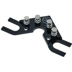 Dietrich Parts String Butler V2 BK, Hardware zur Verbesserung der Stimmstabilität bei E- und Western-Gitarren, konzipiert für Gitarren mit 3L/3R Mechaniken auf der Kopfplatte, korrigiert die Position der A, D, G, H Saite zu einem gradlinigen Verlauf durch die Sattelkerben und verhindert so ein Steckenbleiben der Gitarrensaiten im Sattel, macht betroffene Instrumente insgesamt stimmstabiler und sustainreicher, hält die Stimmung der Saiten auch bei sehr intensivem Gitarrenspiel (verkraftet auch extreme Bendings), schnelle und rückstandslose Montage, Ausführung V2 mit minimum Lochabstand 44mm / maximum Lochabstand 58mm, nicht kompatibel mit Mechaniken mit Einschlaghülsen/Steckhülsen, Farbe Schwarz.