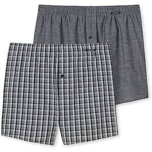 Diese beiden Herren-Boxershorts aus 100% soft gewebter Baumwolle zeichnet neben hohem Tragekomfort auch ein lässiger Look aus. Schwarze, hellgraue und weiße Töne im Karomuster weist das eine Modell auf, das zweite überzeugt in der dezenten, schwarz-weißen Ringel-Variante. Die Knopfleiste mit sichtbarem Knopf setzt ein funktionales Detail, der angenehme Bund sorgt den ganzen Tag über für komfortablen Halt. Ein maskuliner und bequemer Wäsche-Doppelpack in bester SCHIESSER-Qualität! Farbe: Schwarz Material: 100% Baumwolle