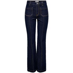 Dein neuer Favorit für die Arbeit und Freizeit wartet: Finde eine coole Jeans mit perfekter Passform und Farbe. Damen Jeans aus Baumwoll-Stretch Hohe Taille Schließt mit Knopf- und Reißverschluss Aufgesetzte Eingrifftaschen vorne und hinten Ausgestelltes Bein Unifarben Farbbezeichnung: Dark Blue Denim / Rinse Material: 99% Baumwolle, 1% Elasthan