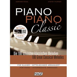 Hage Musikverlag Piano Classic Mittelschwer: 100 klassische Melodien arrangiert für Klavier, mittlerer Schwierigkeitsgrad, mit Fingersatz, herausgegeben von Gerhard Kölbl und Stefan Thurner, ISBN 9783866262447, EH 3783, 21 x 30 cm, 328 Seiten, inkl.QR-Codes zu Demo-Versionen